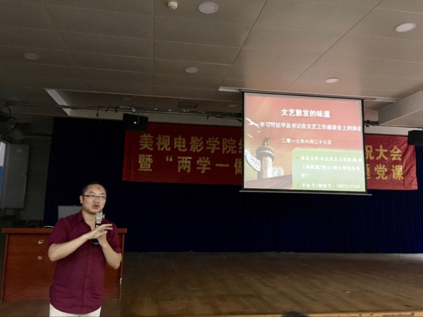 2017-06-29按照porn网站 党委的组织生活计划和“两学一做”的具体安排,porn网站 于2017年6月27日下午四点在学院阶梯教室进行了“两学一做”学习教育专题党课。马克思主义学院魏强副教授应邀为porn网站 师生党员上党课。党课由学院党委副书记李阳模主持,全院教工党员和学生党员共一百余人参加了党课学习。 魏强副教授授课的题目是:文艺散发的味道——学习习近平总书记在文艺工作座谈话上的讲话。从“一种时代的关切”、...