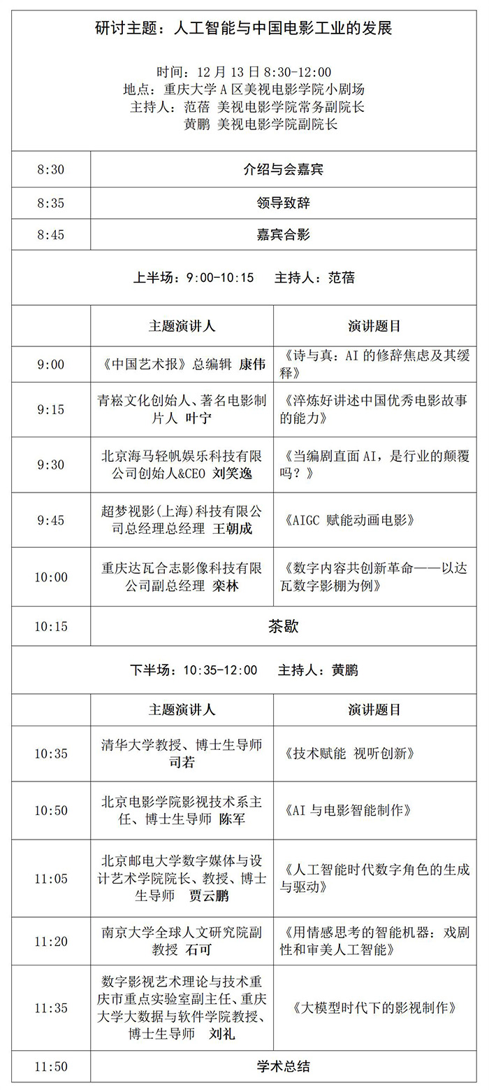 预告|12月13日8:30,“人工智能与中国电影工业发展”学术研讨会议程