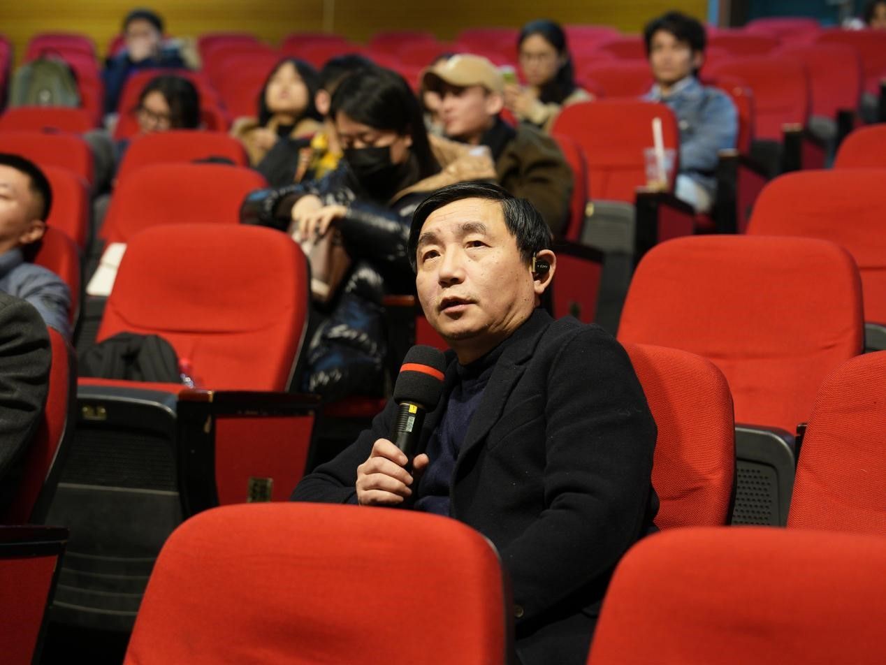 在每一场放映结束后,老师们都会对该场次放映的影片进行点评,以便同学们更好的了解自己影片的优点和缺点,并在后续的学习中进行运用与改正。各位老师首先对影片进行了表扬,肯定了同学们付出的时间和努力。陈力老师指出,在同学们的影片中,他看到了新一代学子们对于社会热点问题的关注,这是值得肯定的。随后又对各个影片进行了更加深入细致的点评。卿一学老师指出了部分作品中剧情设计的不足,并给出了一些改进的建议。杨尚鸿老师则对作品中的部分设计表达了自己的喜爱,并对其进行了更深层次的剖析。