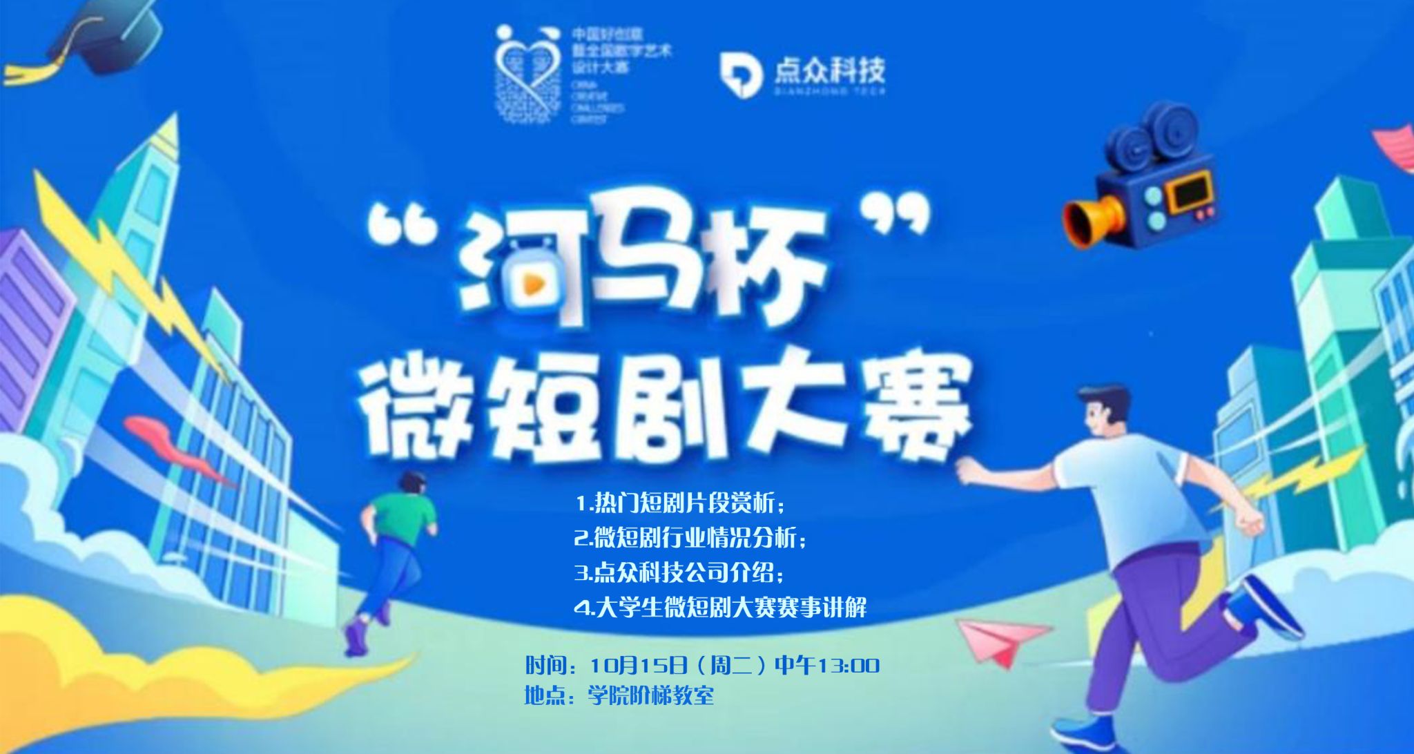 为了挖掘更多的优质作品,扶持优秀的微短剧创作者,推动行业新质生产力的不断突破和创造,由中国网络视听节目服务协会与中国好创意暨全国数字艺术设计大赛组织委员会主办,点众科技承办的第19届中国好创意—首届“河马杯”大学生微短剧专项大赛宣讲会于10月15日,在porn网站