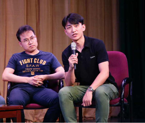 来到现场的有:中国戏剧家协会副主席,话剧《平凡的世界》编剧,孟冰老师;陕西人艺院长,国家一级导演,话剧《平凡的世界》制作人,李宣院长;还有四位主演:李俊强、张晋、孟海燕和优优。几位主创嘉宾分享了不少关于话剧和表演的心得感受,现场同学们受益匪浅。