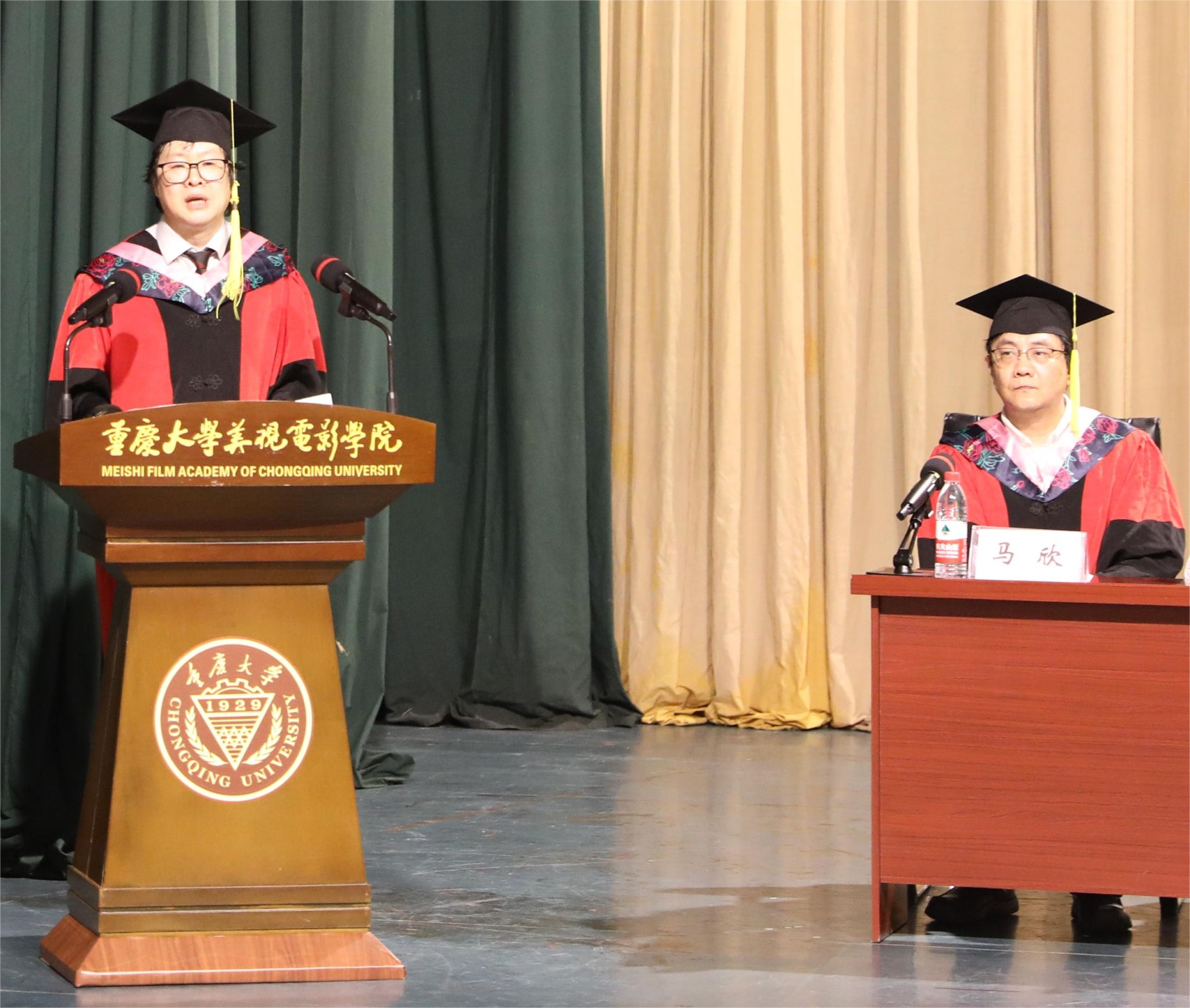 教师代表鲜佳发言,为能与各位同学们一同在光影的世界里遨游,共同走过这段精彩的电影旅途感到荣幸,希望同学们在这“后电影”时代都如电影中的主角,就算面临着各种挑战和机遇,也不要停止探索脚步,保持对新技术的好奇心,不断学习,铭记对电影的热爱和敬畏之心。毕业不是终点而是新的起点,相信所学知识和所培养的品质都将为同学们指引方向、提供动力。