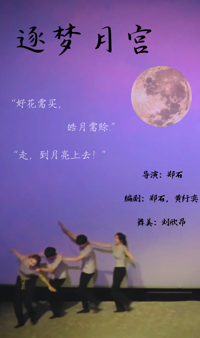 《逐梦月宫》依托讲故事肢体剧场的戏剧形式,以嫦娥奔月的古老传说为起点,穿插清代学者阮元通过天文望远镜观测月亮的史实,再跳跃到现代嫦娥一号探月卫星的成功发射,将中华民族的人文探月史和科技探月史相结合,展现中华民族对探索太空和科技发展的不懈追求。