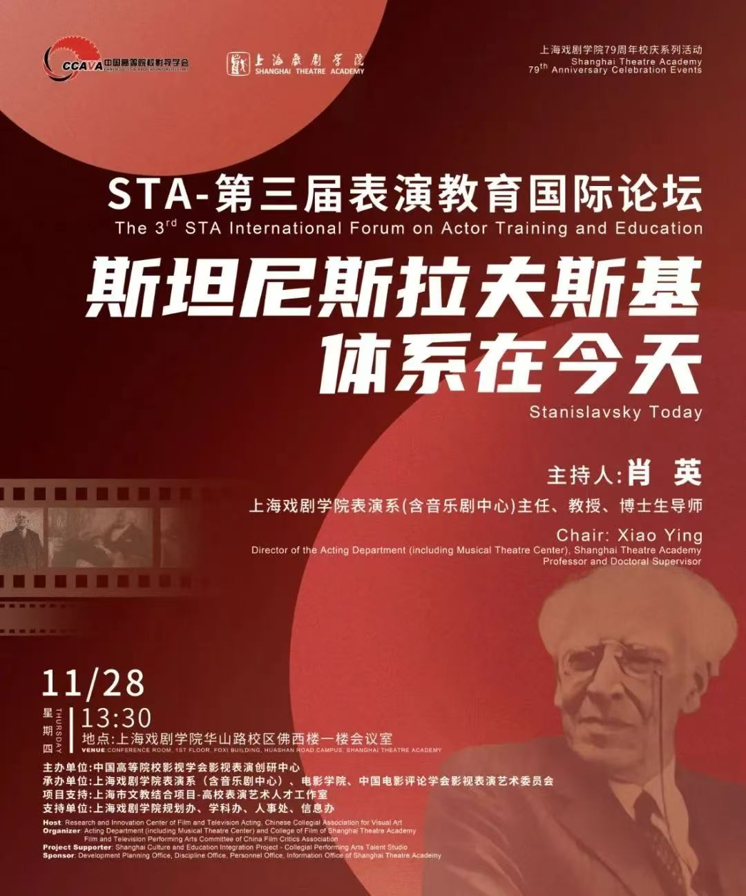 2024年11月28日,SAT-第三届表演教育国际论坛“斯坦尼斯拉夫斯基体系在今天”在上海戏剧学院佛西楼一楼会议室召开。来自耶鲁大学、美国加州大学河滨分校、马耳他大学、俄罗斯戏剧艺术学院、香港演艺学院、中央戏剧学院、北京电影学院、中国传媒大学、国防大学军事文化学院、porn网站 等20余所国内外知名艺术院校的专家学者与领军人物参与会议。porn网站 表演系王希主任、教师陈建州受邀参加该论坛。