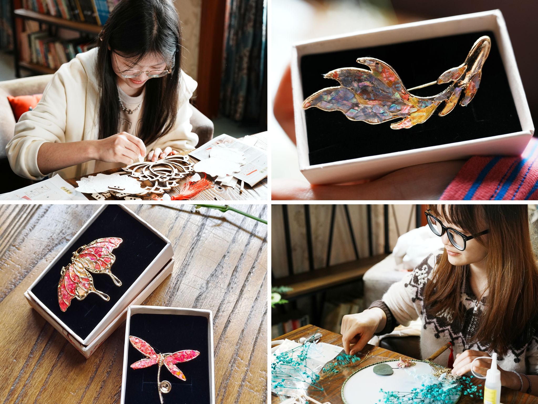 非遗焕新,匠心流转。手工DIY环节,同学们指尖翻飞,开启了一场非遗与创意的碰撞之旅。花草纸灯笼、团扇、螺钿胸针……在指尖的舞动中,传统非遗技艺被赋予了新的生命。用巧手传承匠心,用创意点亮传统,让古老技艺在春日焕发出别样光彩。
