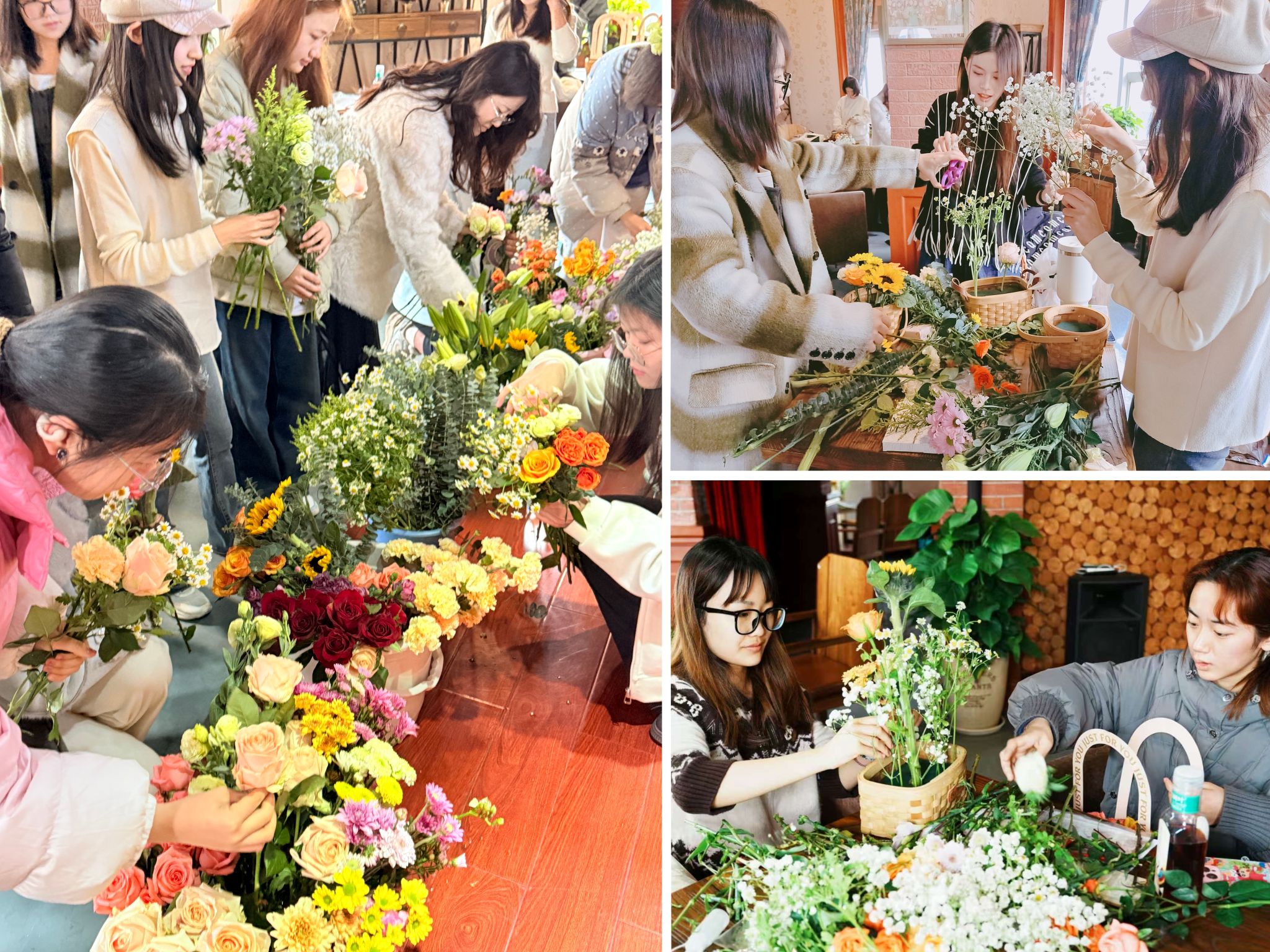 春日花园,指尖绽放。活动当天,大家踊跃参与,从花材选择到色彩搭配,从花型设计到情感传递,大家轻抚花瓣,巧摆枝叶,用双手编织出浪漫与生机。每一束插花,宛如春日使者,传递着对生活的热爱与对美的追求。