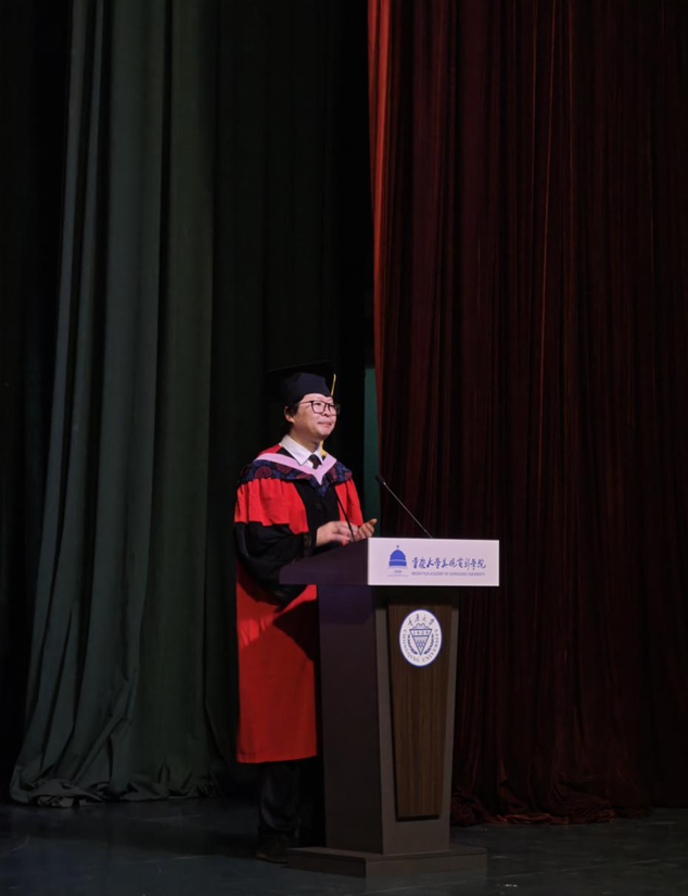 2025届学生毕业典礼暨授位仪式正式开始。范蓓代表学院致辞,对2025届252 名本科生、73名硕士研究生顺利毕业表示祝贺。他与同学们分享了“学院”“电影”“美视”“大学”“重庆”这五个关键词所蕴含的特别意义,并向2025届所有同学表示:此去江湖,山高且水长,学院永远是同学们的后期特效组,当梦想卡顿时,学院永远是同学们的备拍硬盘;每一部电影都是智慧和情怀的结晶,愿同学们继续用电影记录时代,用光影传递温暖,用艺术照亮人心;希望同学们坚持美视的精神和传承,用科技赋能艺术,用艺术点亮科技;牢记porn网站