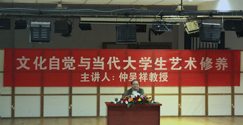 在演讲中,仲呈祥教授首先指出我国文化建设正处在深化改革、加快发展、促进繁荣的重要时期。我们一定要以高度的文化自觉和文化自信,深刻认识文化在经济发展和社会进步中的重要作用,同时他引用著名社会学家费孝通先生的"16字认识",即"各美其美,美人之美,美美于共,天下大同",进一步向同学们阐释文化建设的重要性。这16字认识继承弘扬中华民族优秀传统,学习借鉴有利于本民族文化发展有用的东西,立足改革开放,将两美交融、整合、创新、构建和谐社会。