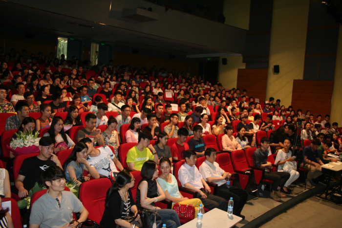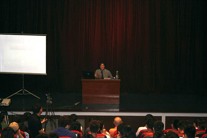 国际学院的师生们。能容纳300多人的小剧场内座无虚席,甚至有很多人站着听完了两个多小时的讲座。