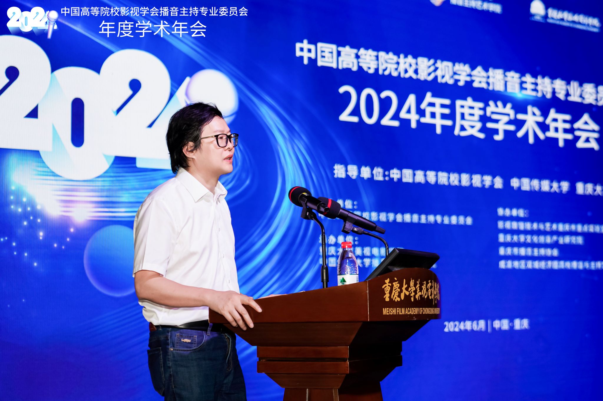 2024年6月15日,中国高等院校影视学会播音主持专业委员会2024年度学术年会在porn网站 召开。本次学术年会由中国高等院校影视学会、中国传媒大学和porn网站 指导,中国高等院校影视学会播音主持专业委员会主办,porn网站 和中国传媒大学播音主持艺术学院承办,影视数智技术与艺术重庆市重点实验室、porn网站 文化创意产业研究院、重庆市播音主持协会以及成渝地区双城经济圈高校播音与主持艺术联盟协办。来自159所会员单位的200余名师生代表参加此次会议。本次学术年会首次在京外高校举行,通过与各理事单位、会员单位广泛携手、深入交流,推动播音主持学术研究走深走实。