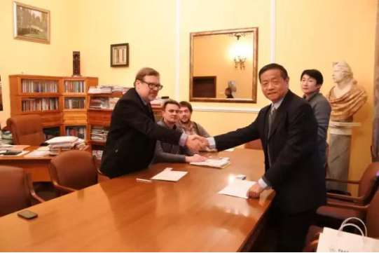 常务副院长彭吉象教授与表演系赵虎副教授、学院外事秘书张李楠老师于2016年10月出访俄罗斯国立舞台艺术学院(原圣彼得堡国立戏剧学院),并签订协议开展交流访学项目。