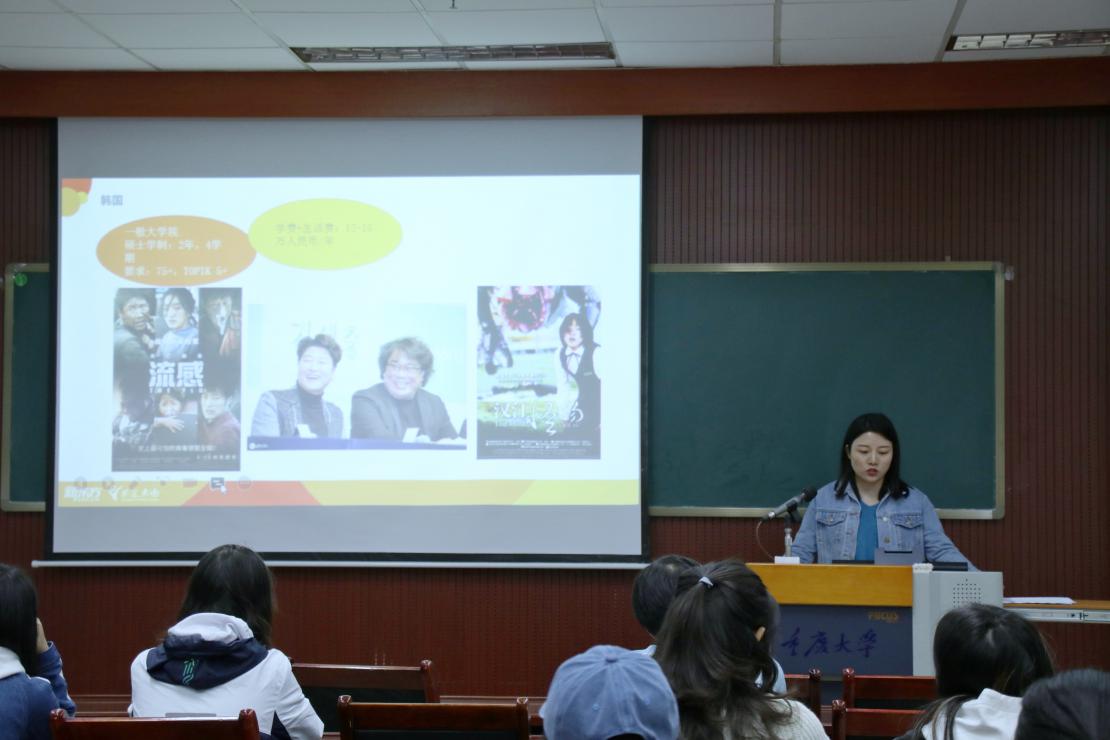 重庆新东方留学规划师罗祺老师结合影视类、新闻传播类欧亚留学分析,给同学们解读了欧洲和亚洲一些高水平院校的影视传媒类专业的硕士项目的基本概况和就业前景,并以案例展示的形式详细解读了申请人需要具备的软硬件素质。
