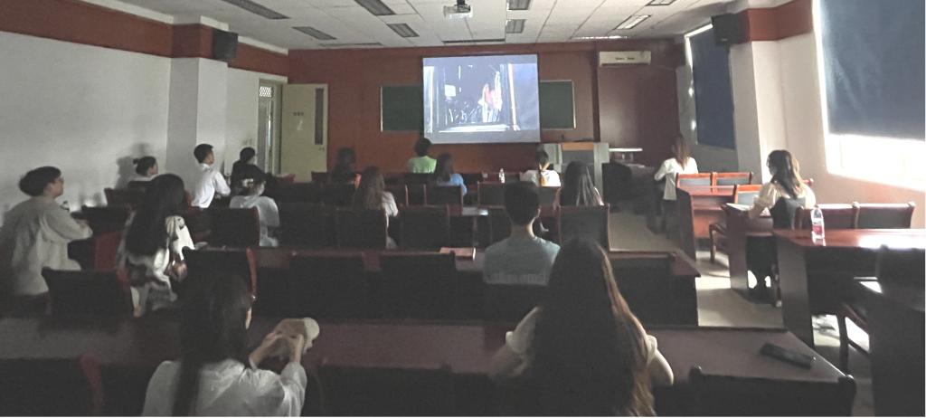 下午3时整,全体同学整齐佩戴团徽,面向团旗,高举右拳,庄严宣誓。宣誓结束,同学们还一同观看了爱国主义影片--《我的1919》,看到有无数的英雄在反抗和救国的道路上留下了鲜血和生命,同学们深深感受到了中国人民赤诚的爱国之心。
