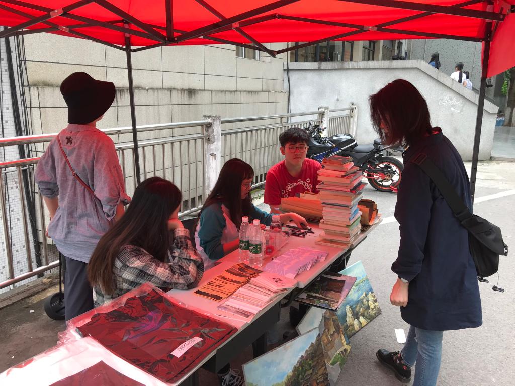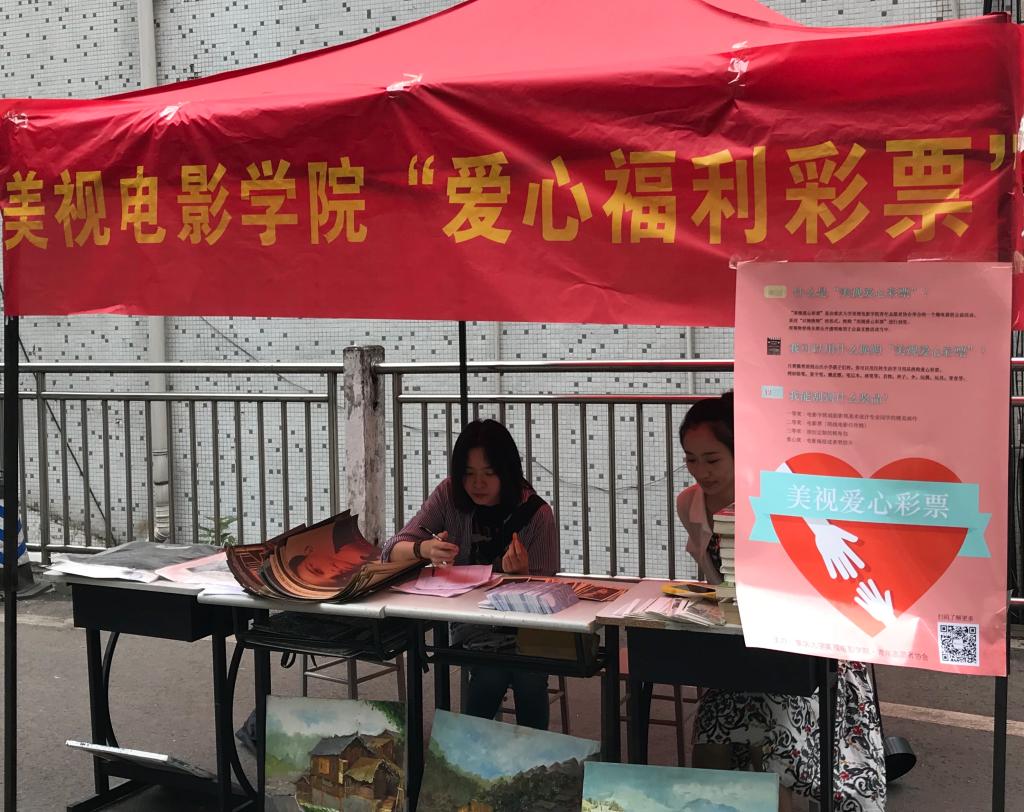 几天的连绵阴雨,却不能冲淡重大学子为山区孩子们爱心捐书的热情,重大美视爱心福利彩票活动至今日仍在如火如荼地进行。由电影学院美术设计的同学们精心绘制的画作、印有重大简拼的清爽帆布包,实用的电影票、优美的电影海报以及精致的明信片作为“奖品”吸引了许多同学驻足询问,并积极捐献。