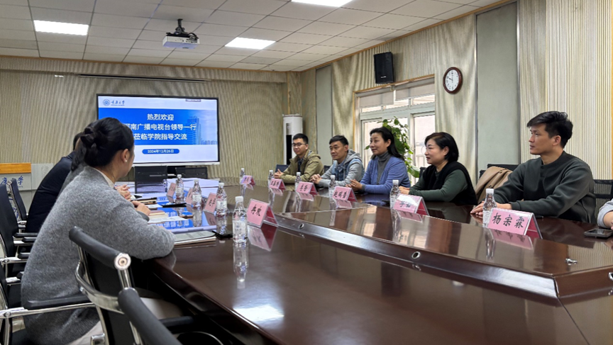 赵瑞莹对学院在人才培养等方面取得的成绩给予高度评价与赞赏,详细介绍了近年来河南广播电视台的发展情况。她表示,河南广播电视台以新闻立台、文化兴台、改革强台为发展目标,集传统媒体与新媒体、事业与产业、节目生产制作与传输于一体,形成了以内容打造品牌、以移动互联扩大品牌影响的传播新模式、产业新生态,具有广泛的影响力和传播力。她还介绍了此次招聘的计划、需求等,并提出了与学院建立长期稳定合作的意向。