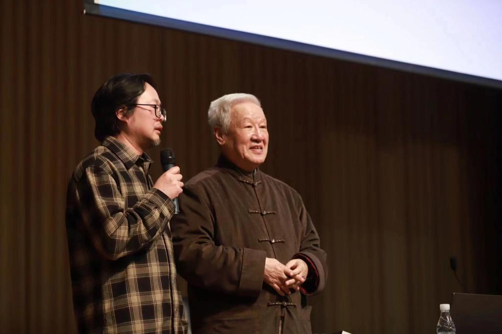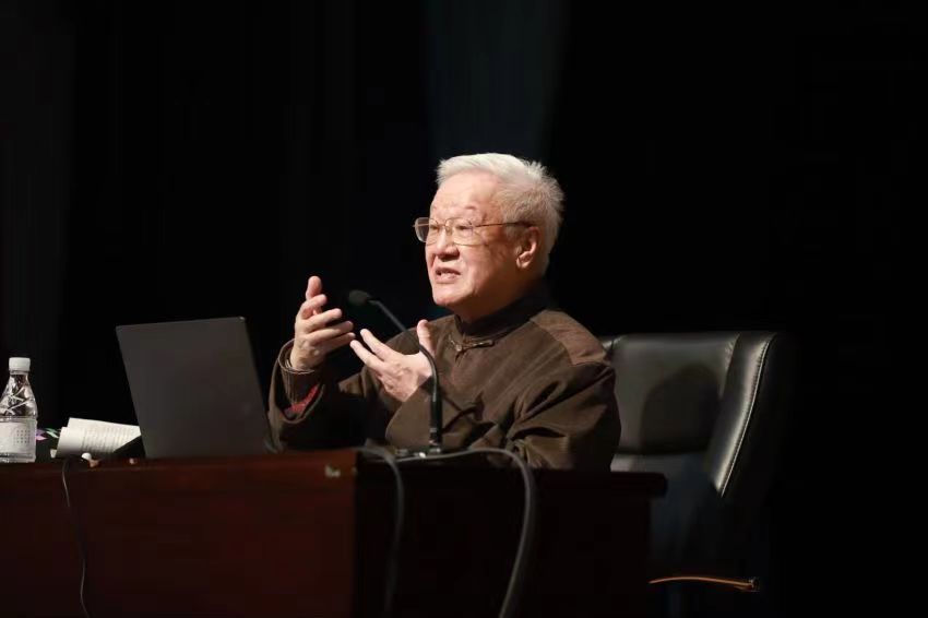 谢飞教授向在场影视专业学子表达了亲切慰问。他结合自身极不平凡的经历,运用极其亲和的话语,开场便提出了自己的观点:看电影、拍电影是学习电影的最好方法。谢飞教授以自己从小学到初中再到大学及至投身创作的人生轨迹为纵线,提纲挈领、别出心裁地将“兴趣、积累、热爱、技艺”总结成线索,以个人鲜活的成长事例、深厚的专业沉淀、渊博的电影知识,向广大听众传递、讲解、分享了宝贵的学习经验与自我的创作心得。