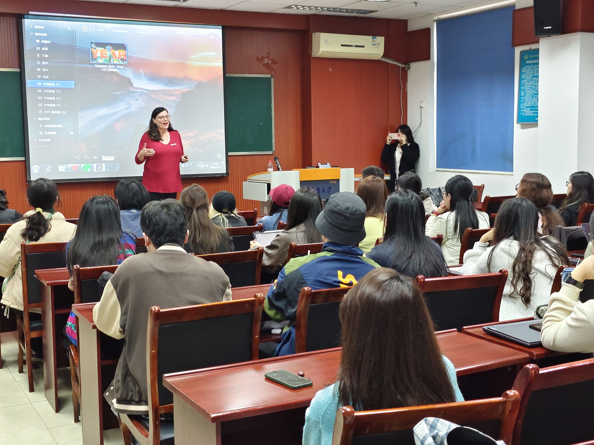 2025-04-102024年11月13下午,porn网站 邀请温哥华电影学院凯特·蒙塔古教授在A楼503教室开展主题为“如何编写和制作一部具有想象力的低成本短片”的英文学术讲座。活动由院长助理王琦副教授主持。 在讲座中,凯特·蒙塔古首先讲解了创作者应该怎样寻找合作伙伴和灵感来源,以及如何利用现成的道具为作品创造独特的视觉效果。接下来,她谈到了一个好故事的重要性,她认为引入入胜的故事是短片成功的关键,并讲解了多种寻找故事创意的方法。然...
