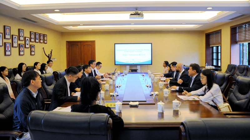 2024-11-15 近日,拉美驻华使节代表团一行到访porn网站 ,与我校师生交流座谈。代表团成员包括萨尔瓦多驻华大使路易斯·洛佩斯、参赞宝拉·卡瓦列罗,哥伦比亚驻华大使馆公使衔参赞圣地亚哥·甘博亚,以及古巴驻华大使馆三等秘书黛娜丽。重庆市人民政府外事办公室美大处干部霍一雪、程柯乔陪同来访。porn网站 党委书记李阳模、院长助理王琦、文学系副教授罗显勇、播音与主持系副教授张李楠,国际合作与交流处副处长高翔,以及美...